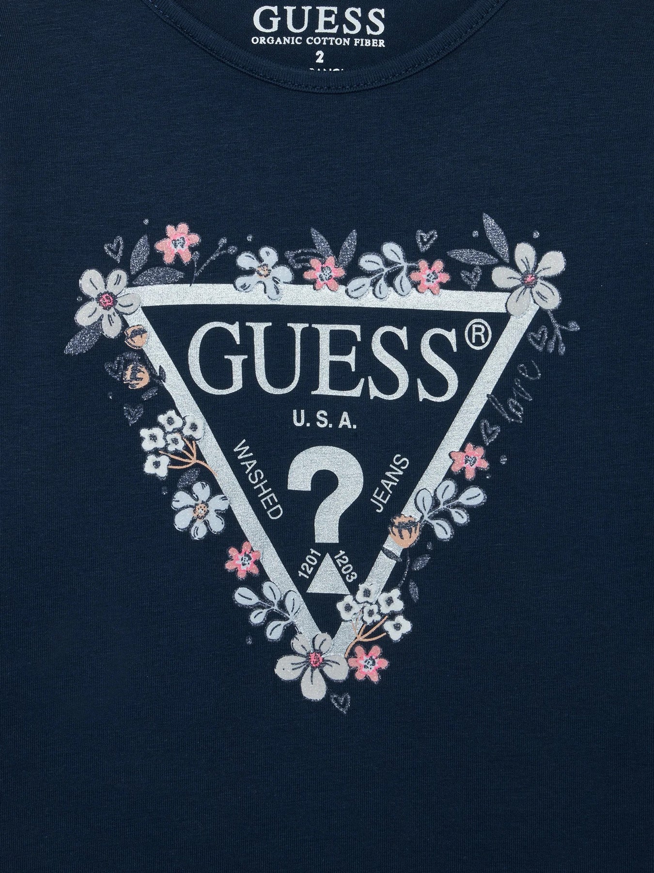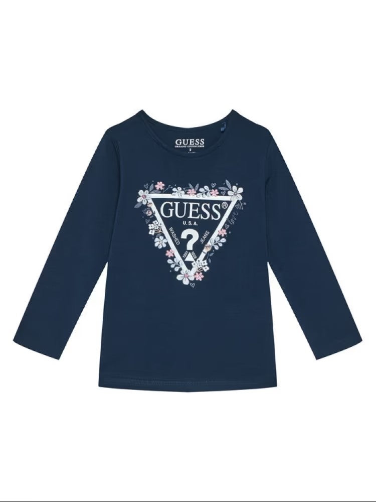 Kaos anak perempuan lengan panjang Guess High Low adalah item yang wajib dimiliki dalam lemari pakaian wanita muda modern.
