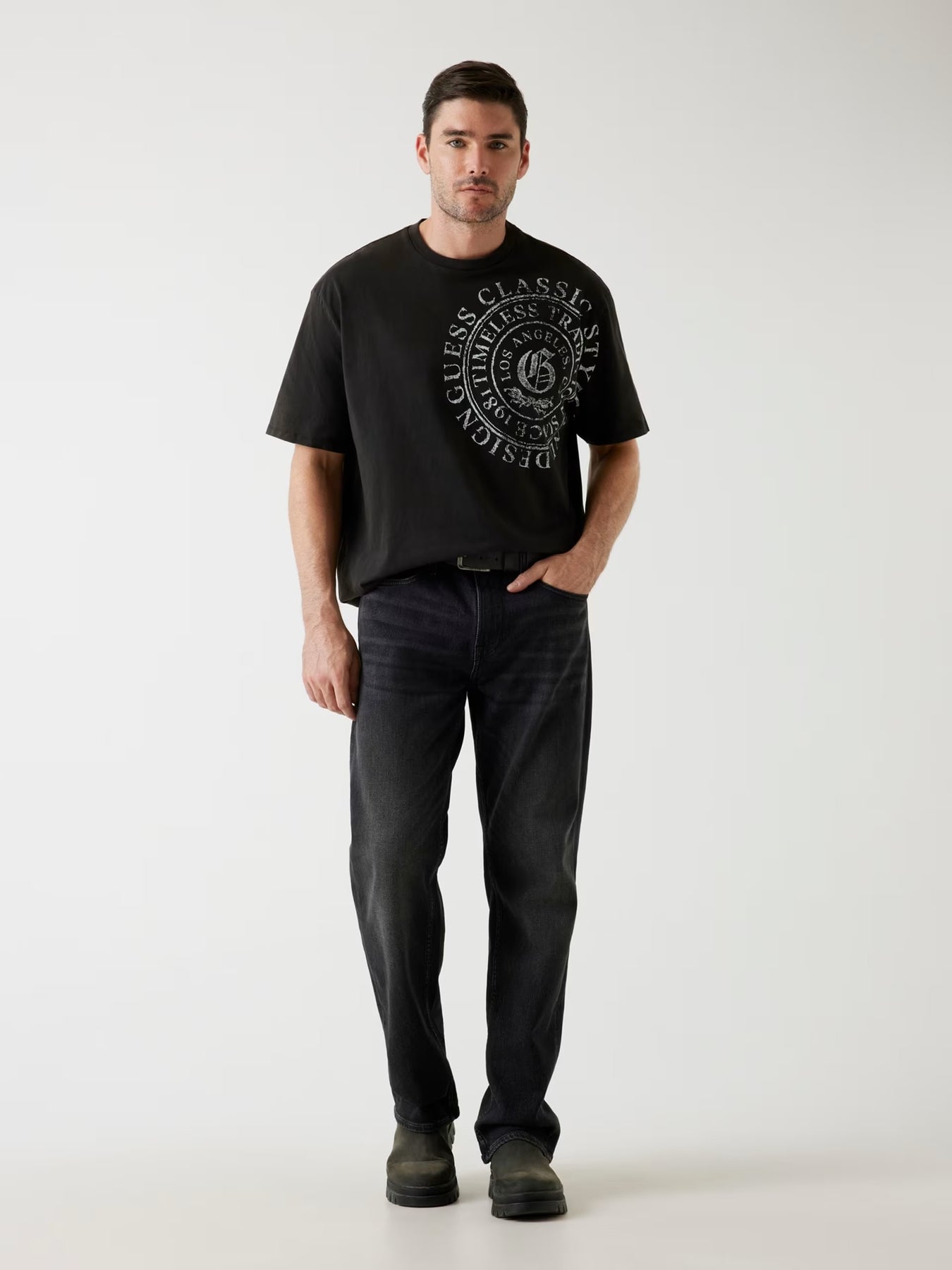Sablon tulisan logo oversized di bagian depan.