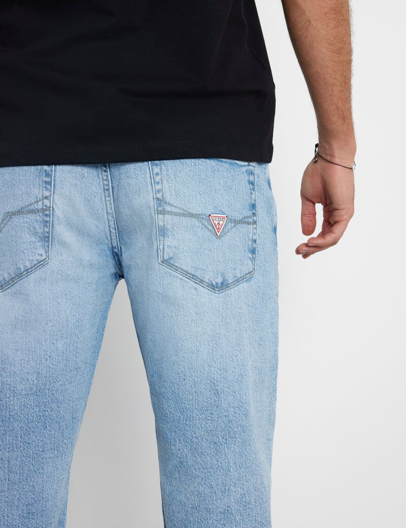 Slim-fit, five-pocket denim pants in a cotton blend.